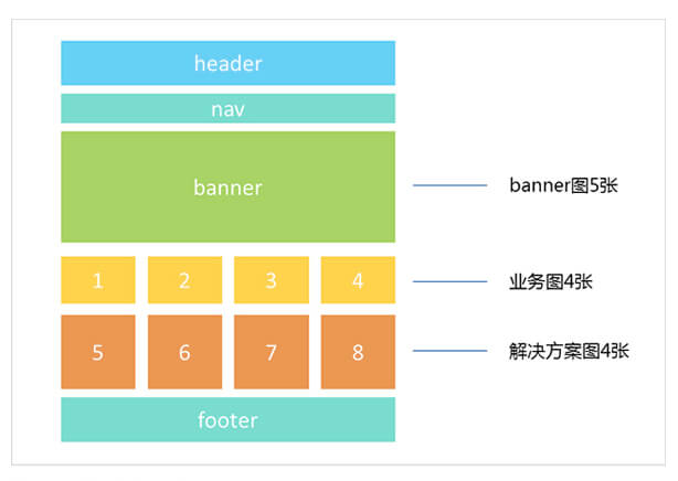 在图片设计前,设计师最好能参考目前已有的网页粗略布局和栏目等,重新梳理列出网站中所需的图片类型。比如,按照栏目和模块对所需的图片分类:Banner、业务介绍、产品介绍/展示、公司介绍、团队介绍、新闻/资讯、客户案例等。